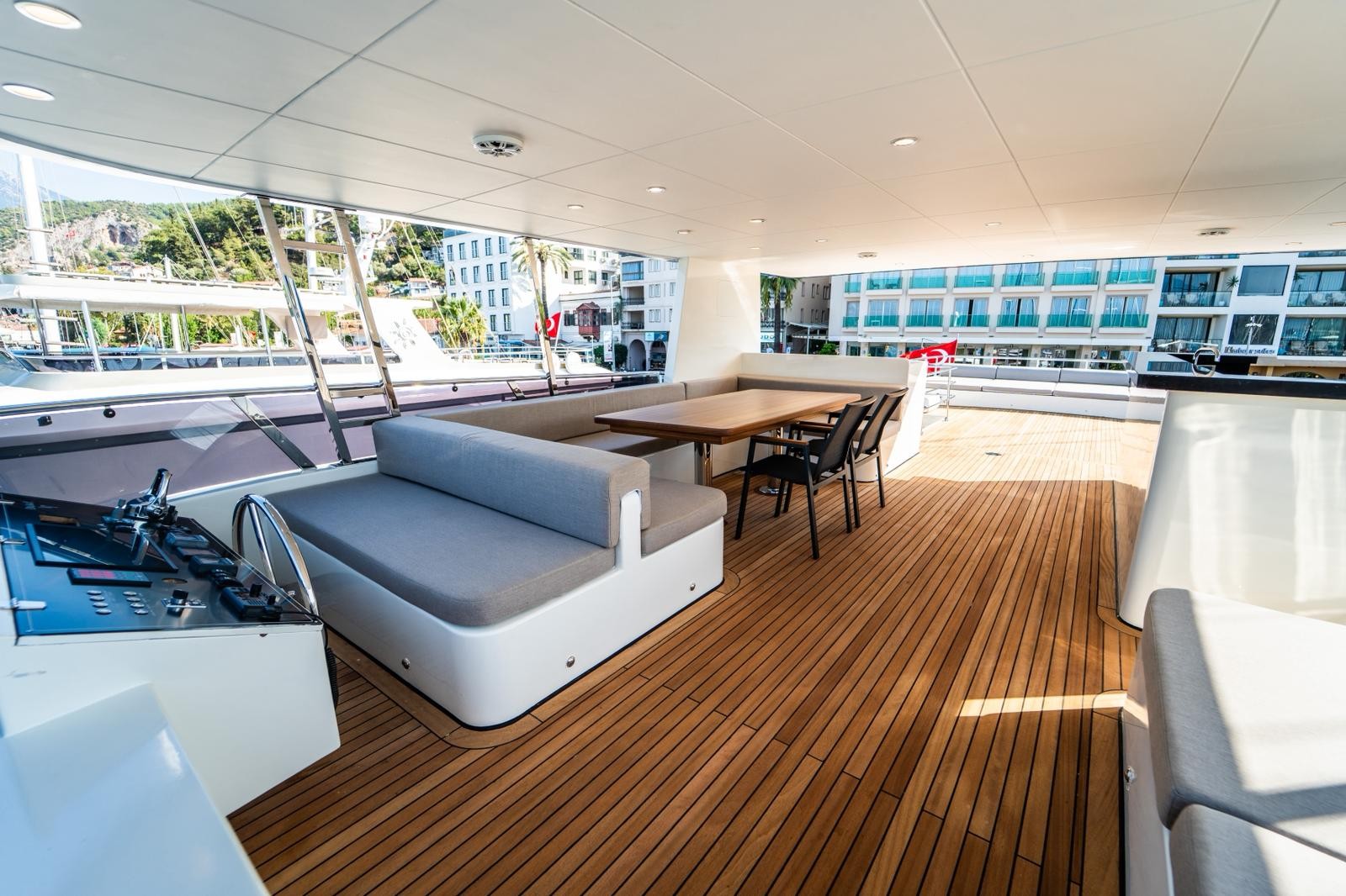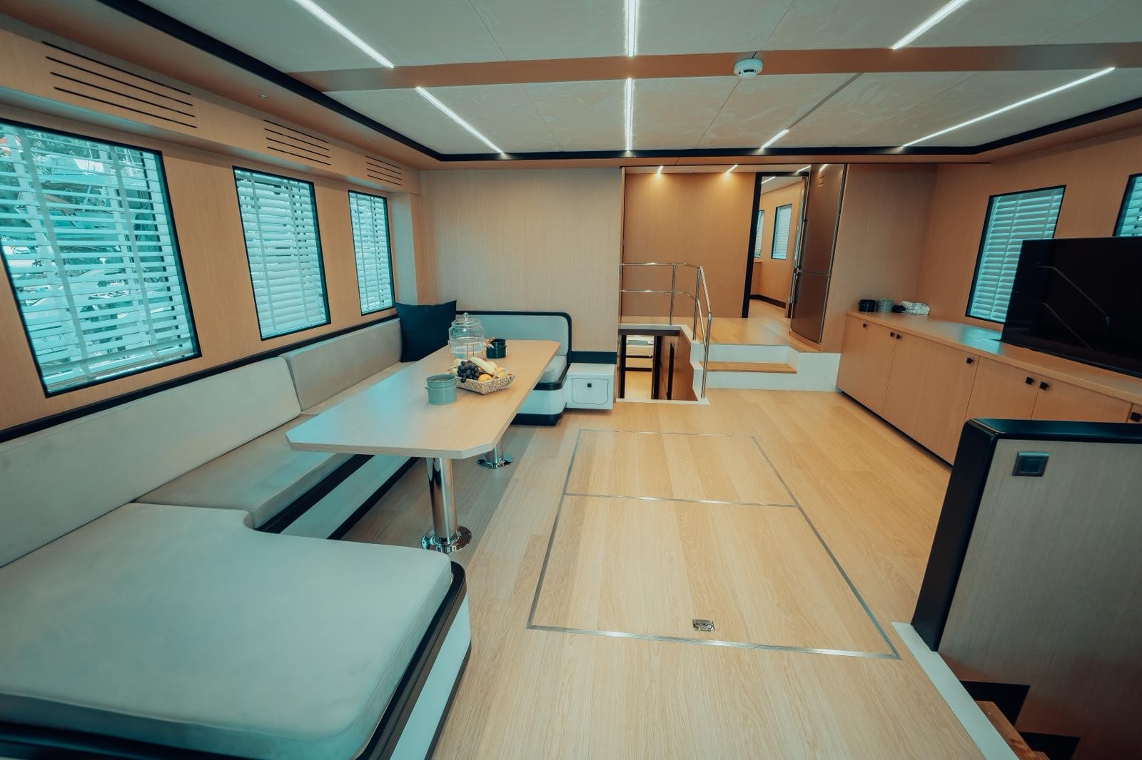BELUGA Trawler’nın geniş ve ferah salonları, doğal ışıkla dolu panoramik pencereleri ve lüks mobilyaları ile rahat bir yaşam alanı sunarken, her kabin modern tasarımı, en-suite banyosu ve kişiye özel klima sistemiyle tatilinizi kusursuz kılıyor. Güneşlenme alanları, açık güverteler, jacuzzi ve yüzme platformu ile gün boyu hem dinlenme hem de eğlence fırsatlarını bir arada sunuyor. Akşamları ise yıldızların altında, profesyonel şef tarafından hazırlanan özel yemeklerle Ege’nin büyüleyici manzarasını keyifle seyredebilirsiniz.