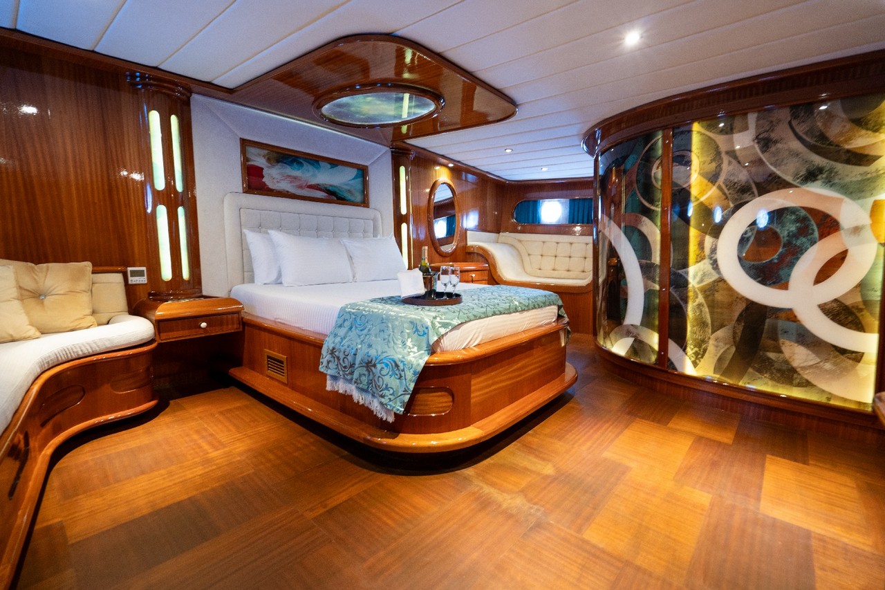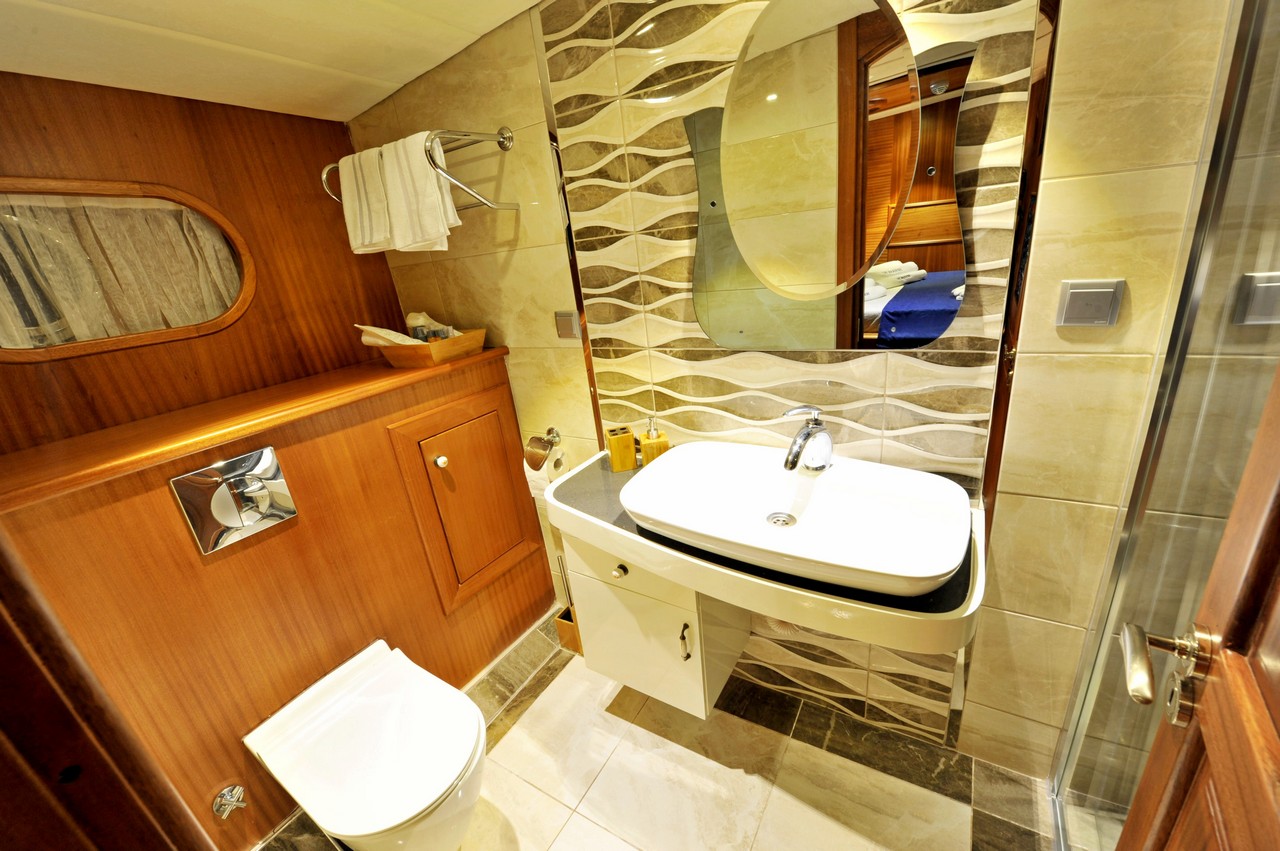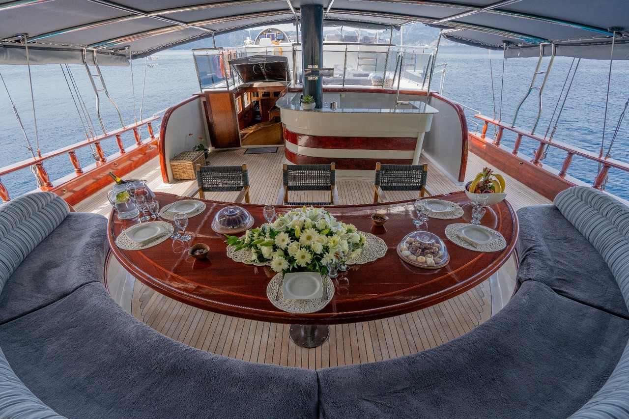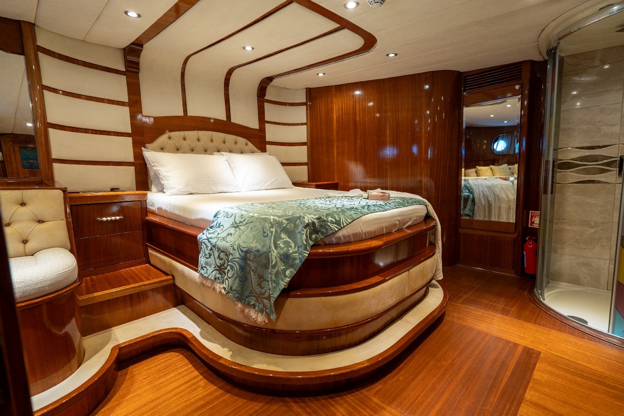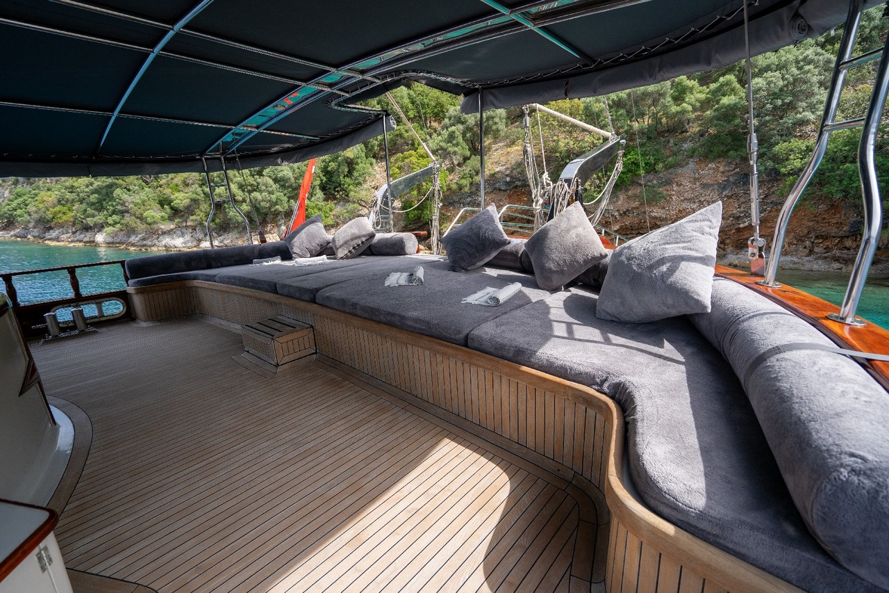 Bu gulet, hem iç hem dış mekânlarda misafirlerine rahatlık ve estetik sunarken, Akdeniz ve Ege kıyılarında prestijli ve konforlu bir yolculuk olanağı sağlar.