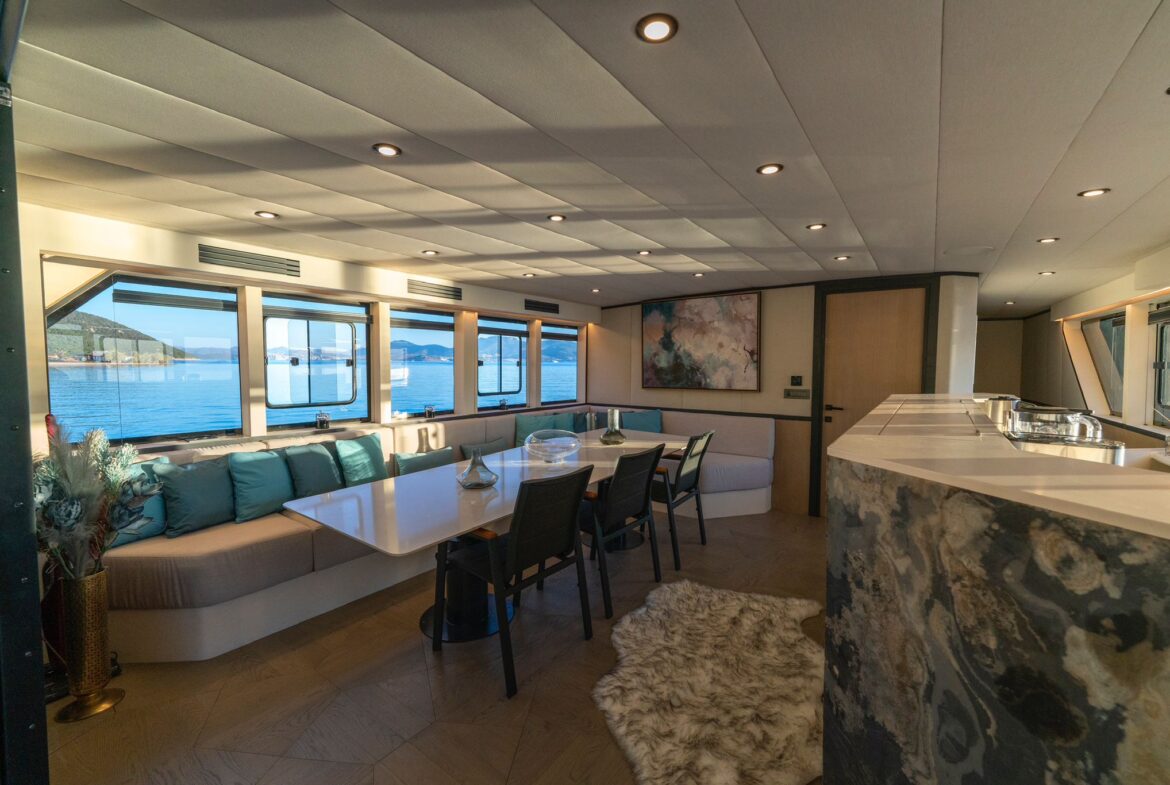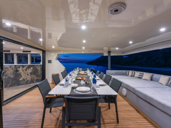 Jakuzi, bar, geniş güneşlenme alanları ve arka güvertede oturma ve yemek alanları bulunur. - Tekne hangi sezonlarda kiralanabilir?