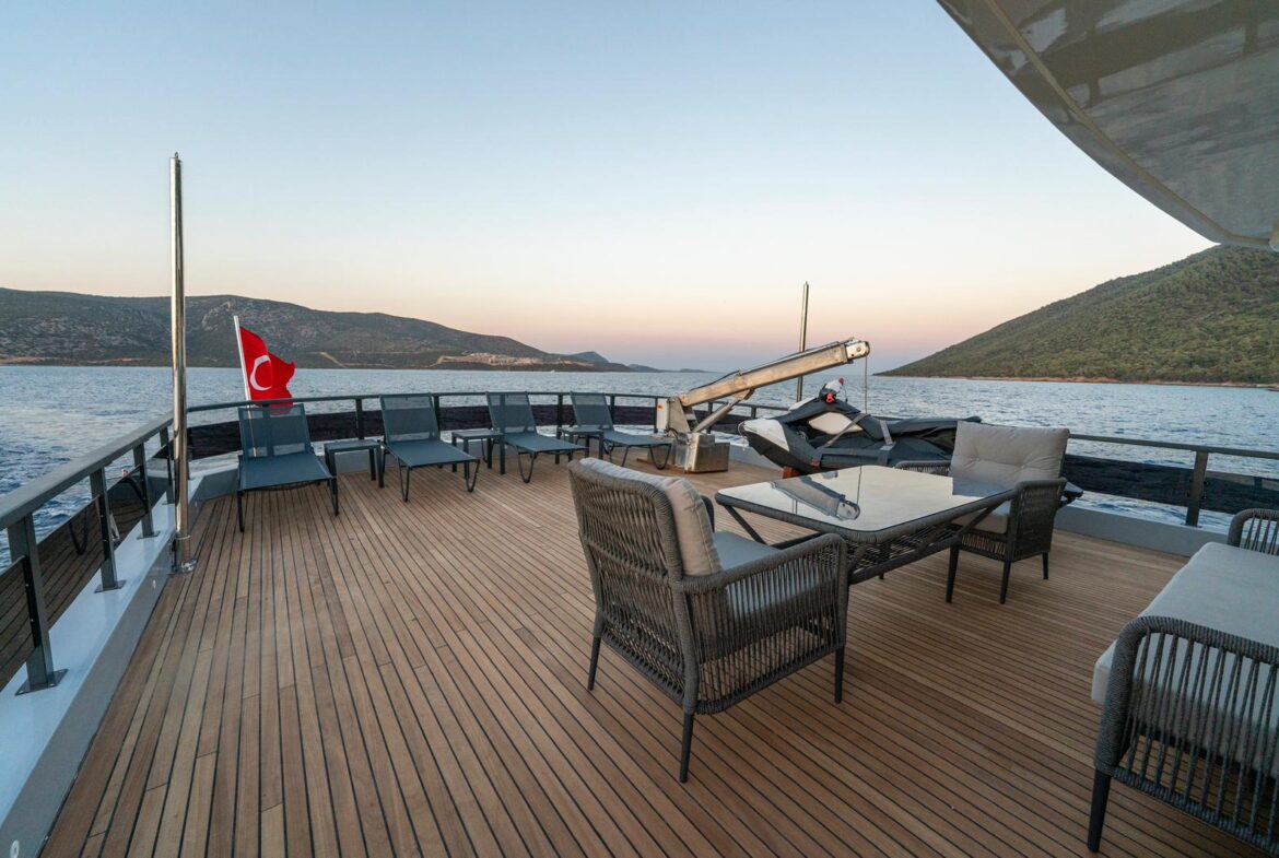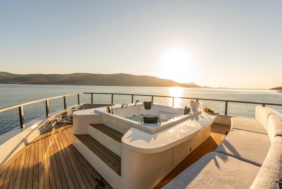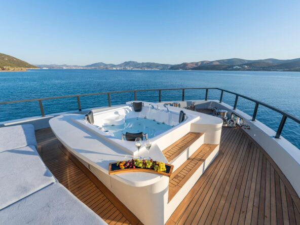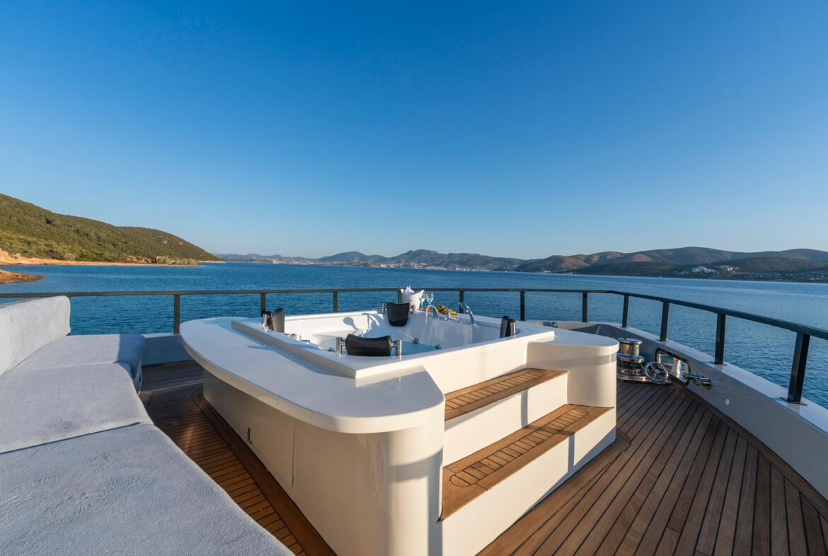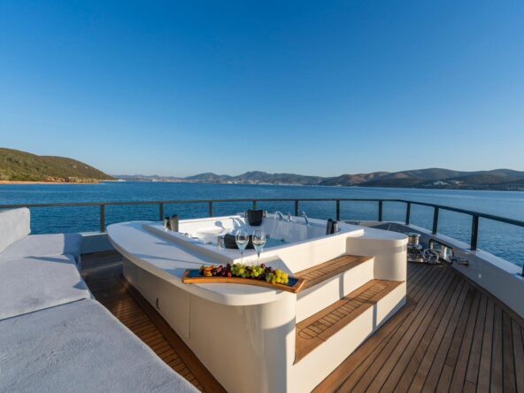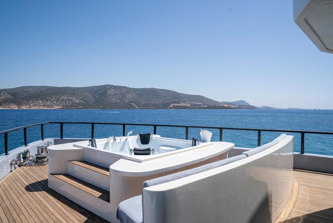 - Üst güvertede jakuzili rahatlama alanı, bar ve geniş güneşlenme minderleri bulunur.