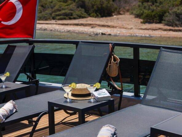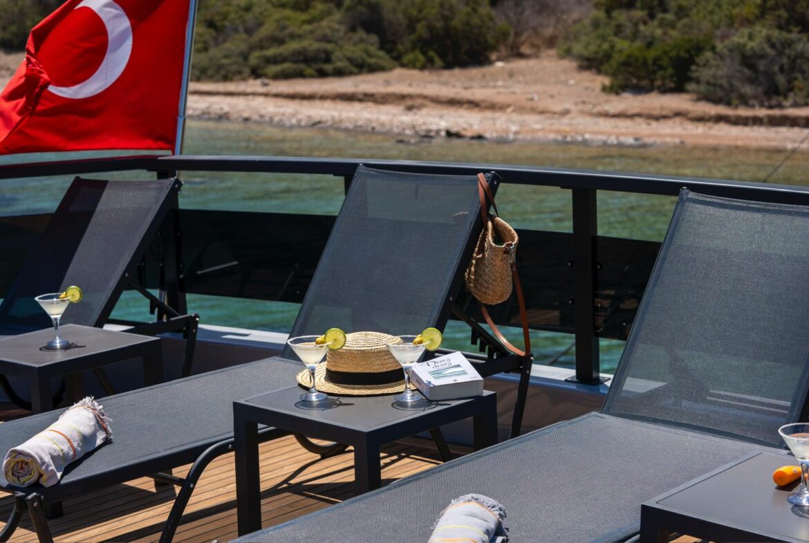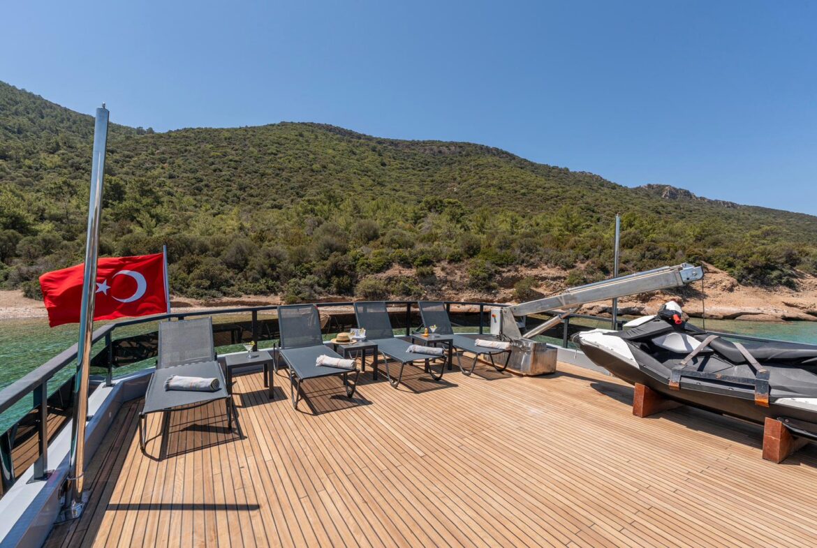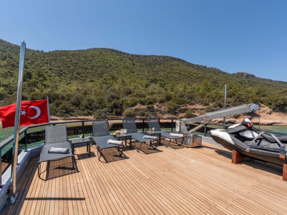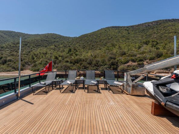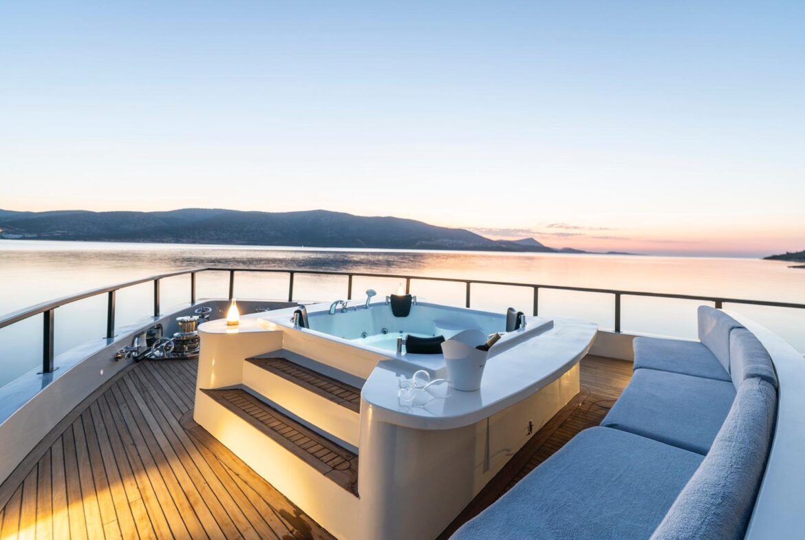 - Üst güvertede jakuzili rahatlama alanı, bar ve geniş güneşlenme minderleri bulunur.