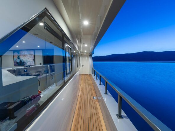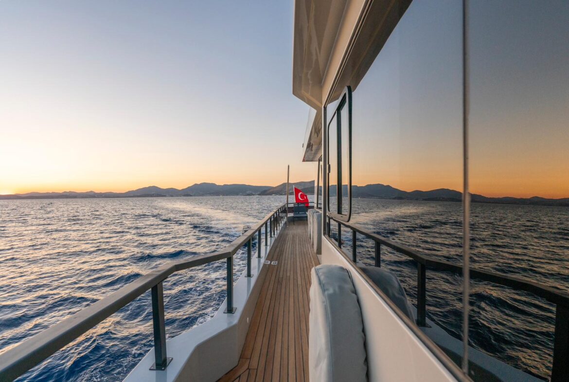 Ayrıca, teknede kullanılan gelişmiş konfor ve sessiz motor teknolojisi sayesinde misafirler, denizin ritmiyle uyum içinde, gürültü ve stres unsurlarından uzak, rahat bir seyir deneyimi yaşarlar. Bu isim, motoryatın hem dış tasarımında hem de iç mekan düzenlemelerinde yaratılan huzurlu atmosferin bir simgesidir.