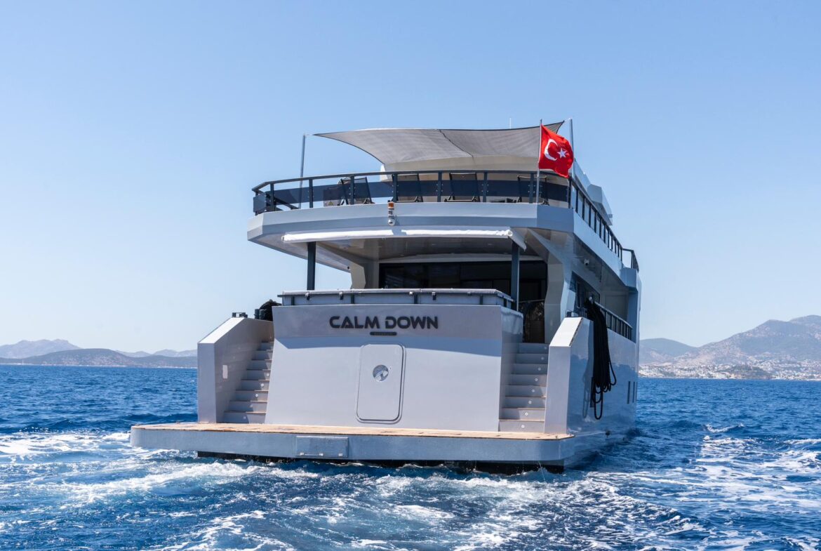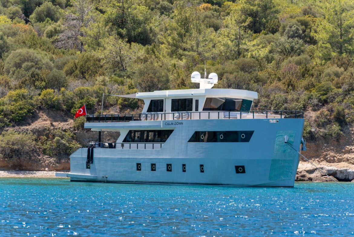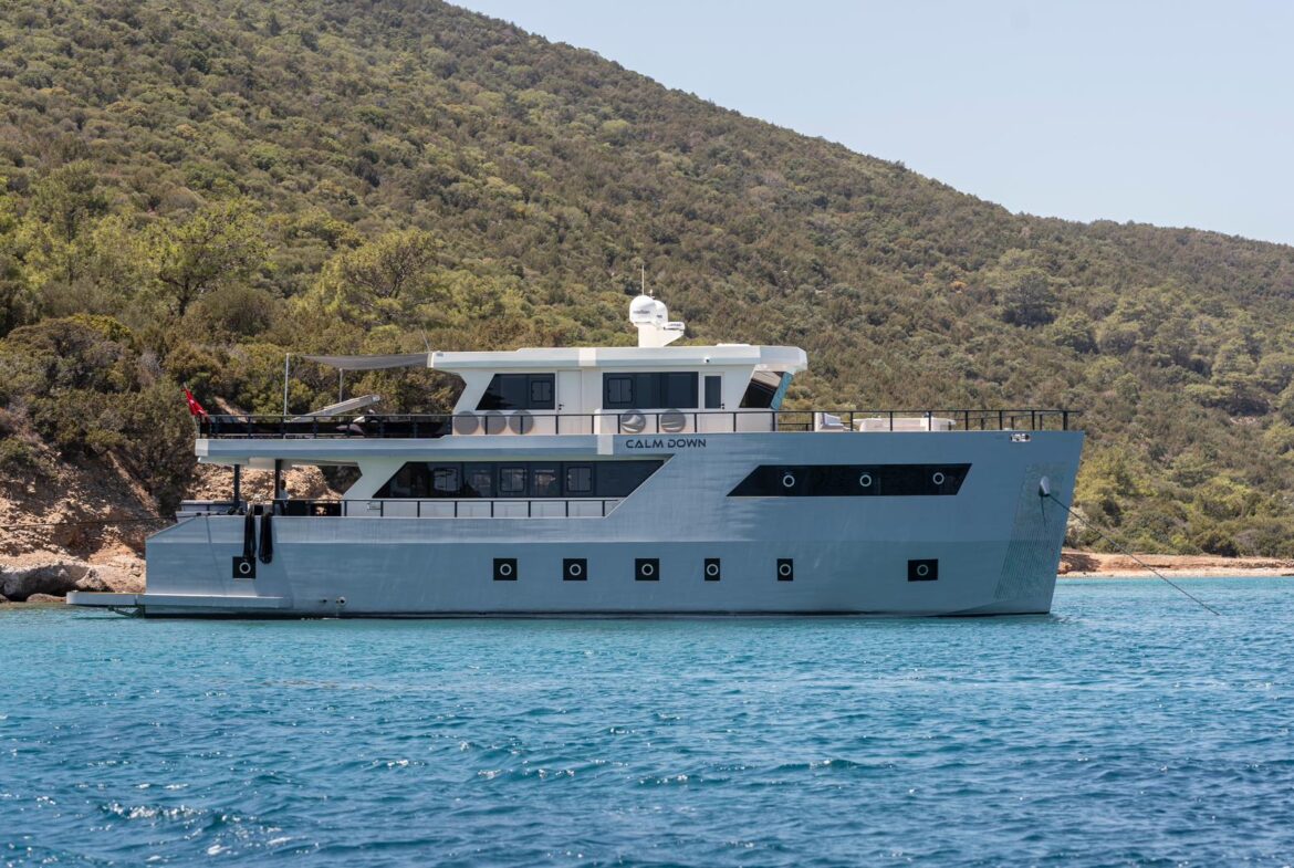 Calm Down, 2023 yılında denize indirilen, modern tasarımı ve üstün teknolojik donanımları ile dikkat çeken 30 metre uzunluğunda lüks bir trawler motoryattır. Bodrum, Marmaris, Fethiye ve Göcek limanlarından hareket edebilen bu özel yat, aynı zamanda Yunan Adaları rotalarında da benzersiz bir tatil deneyimi sunar. Konfor, performans ve şıklığı bir arada sunan Calm Down, her türlü detayın incelikle düşünüldüğü bir deniz evi olarak misafirlerine unutulmaz anlar yaşatmak üzere tasarlanmıştır.