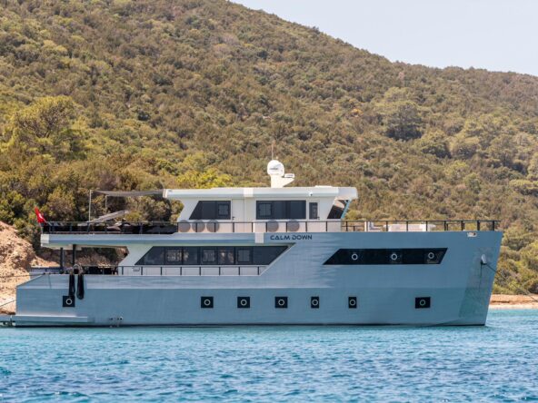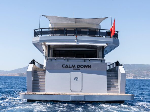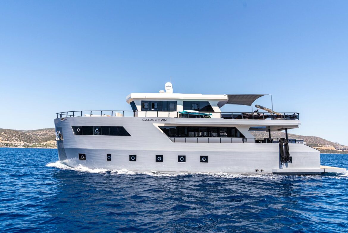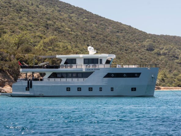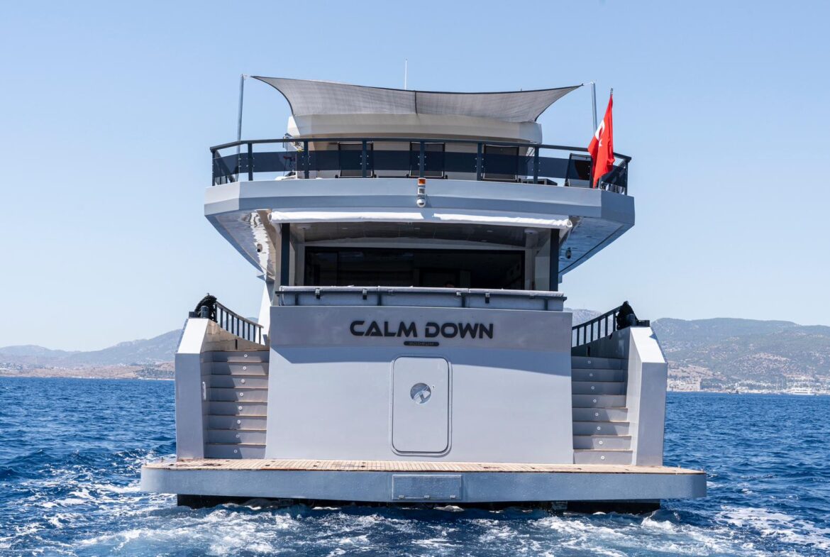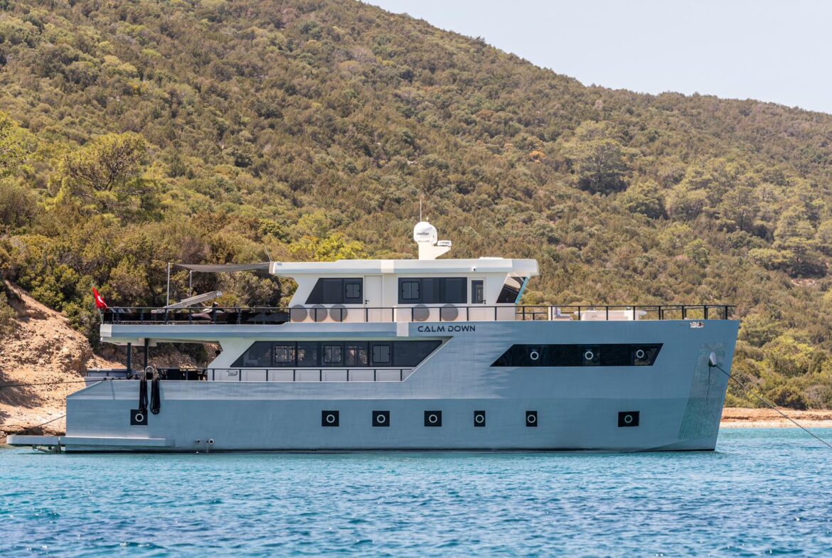 Calm Down, 2023 yılında denize indirilen, modern tasarımı ve üstün teknolojik donanımları ile dikkat çeken 30 metre uzunluğunda lüks bir trawler motoryattır. Bodrum, Marmaris, Fethiye ve Göcek limanlarından hareket edebilen bu özel yat, aynı zamanda Yunan Adaları rotalarında da benzersiz bir tatil deneyimi sunar. Konfor, performans ve şıklığı bir arada sunan Calm Down, her türlü detayın incelikle düşünüldüğü bir deniz evi olarak misafirlerine unutulmaz anlar yaşatmak üzere tasarlanmıştır.