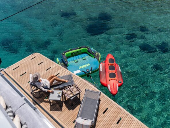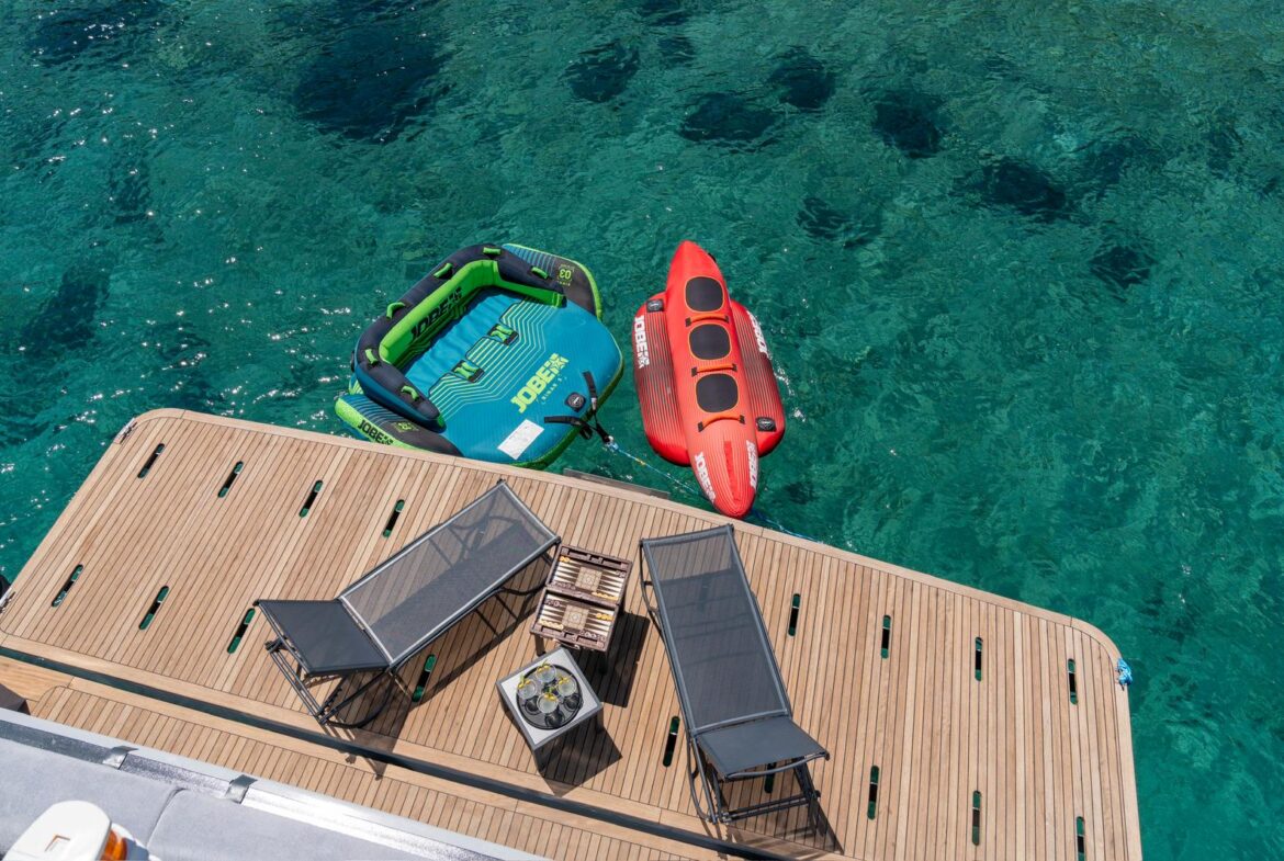 - Deniz merdiveni, servis botu ve kaliteli su sporları ekipmanları ile tatilinize hareketlilik katar.