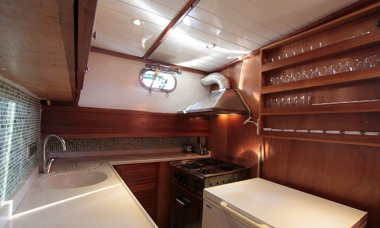 Guletin salonu geniş ve ferah dizayn edilmiştir. Konforlu oturma grubu, yemek masası ve eğlence sistemi ile misafirlerin vakitlerini keyifle geçirmesi hedeflenmiştir. TV, müzik sistemi gibi donanımlar ile salon tatilin her anında dinlenme imkânı sunar. Tam donanımlı mutfakta servis edilecek lezzetli yemekler salon veya güvertede servis edilebilir. {index=2}