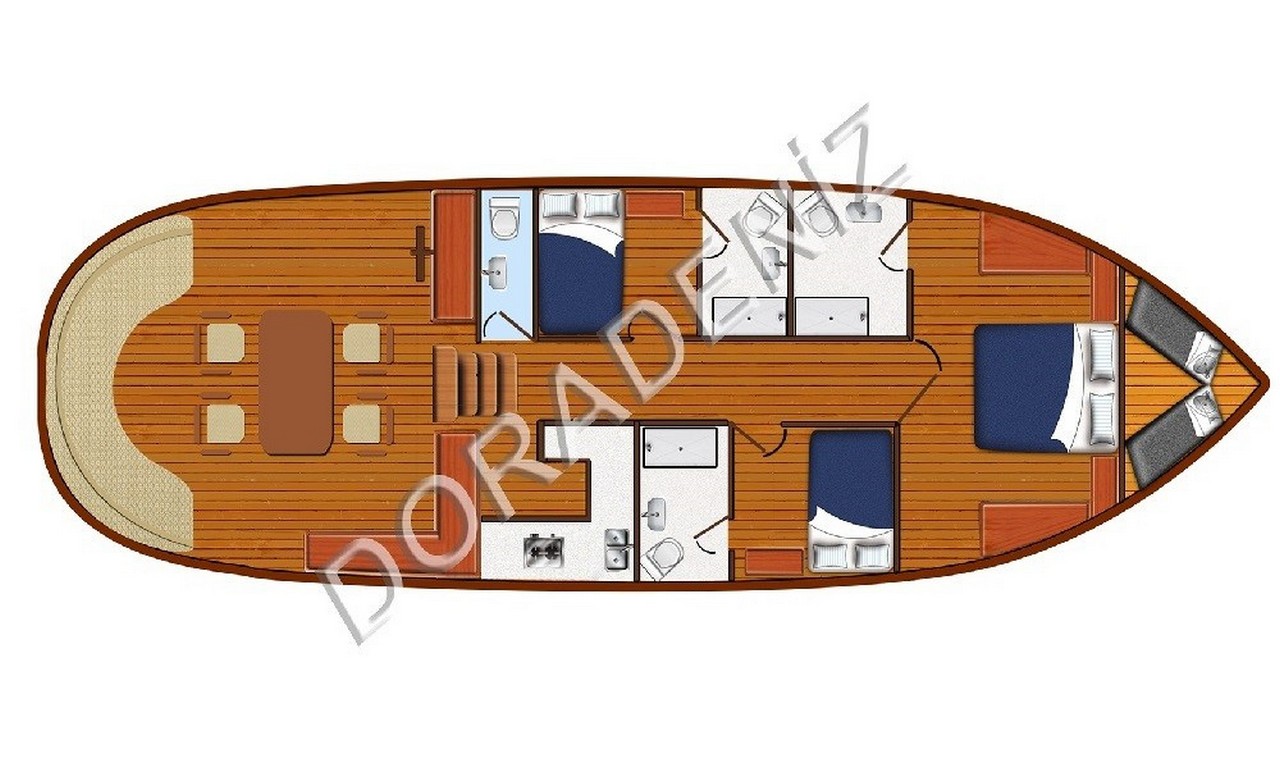 Dora Deniz Gulet toplamda 3 konforlu kabini ile 6 kişiye kadar konaklama sağlar:
