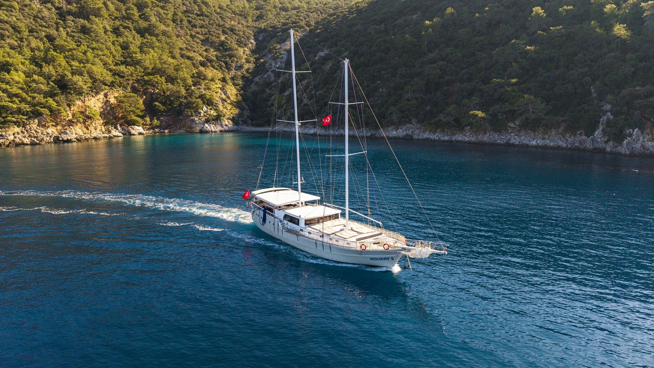 Holiday 5 Gulet ile Türkiye’nin Ege ve Akdeniz kıyılarında unutulmaz bir mavi yolculuğa adım atın. 28 metre uzunluğa sahip bu klasik çizgilere sahip, modernize edilmiş Türk guleti; geniş yaşam alanları, yüksek konfor seviyesi ve 10 kabinlik kapasitesiyle kalabalık gruplar için özel olarak tasarlanmıştır. Aynı anda 20 misafire kadar konaklama imkânı sunan Holiday 5, büyük aileler, arkadaş grupları, kurumsal organizasyonlar veya paylaşımlı kabin konseptini tercih eden misafirler için ideal bir mavi tur alternatifidir. Düzenli olarak yenilenen yapısı ve özenle korunan donanımı sayesinde geleneksel ahşap ustalığını modern konfor anlayışıyla bir araya getirir.