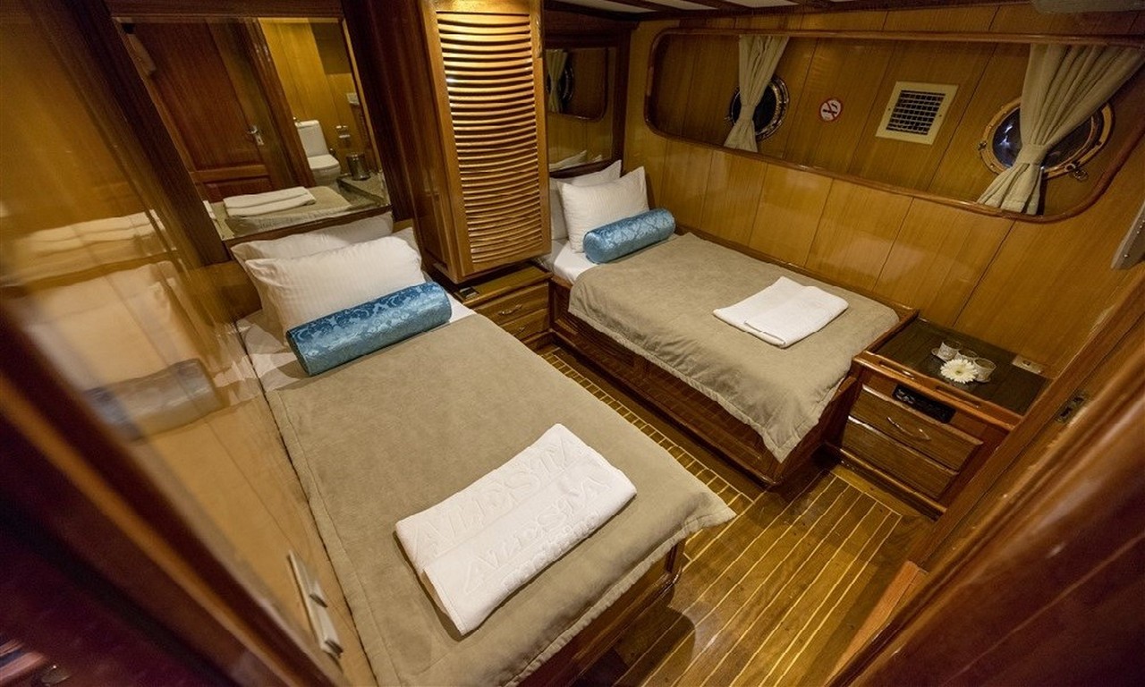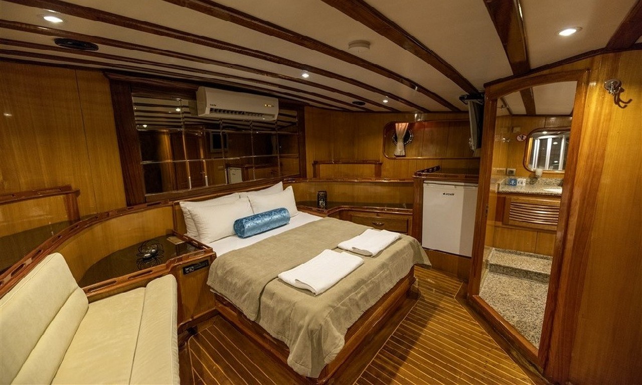 Teknede bulunan kabinler double ve twin kabin seçeneklerinden oluşur. Double kabinlerde geniş çift kişilik yatak bulunurken, twin kabinlerde ayrı iki yatak bulunmaktadır. Bu kabin düzeni sayesinde hem aileler hem de arkadaş grupları rahat bir konaklama deneyimi yaşayabilir.