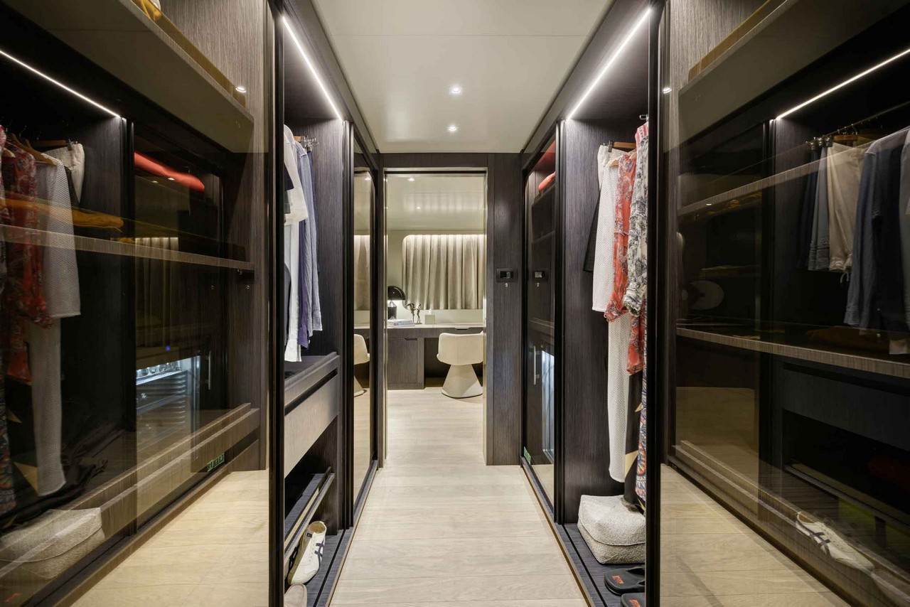 • Geniş giyinme odası ve yerden aydınlatmalı dolap sistemi