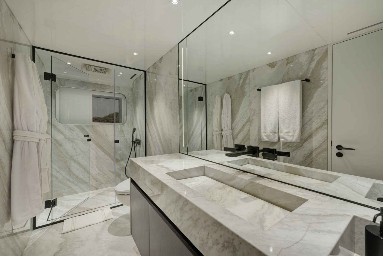 • Mermer detaylarla tasarlanmış büyük en-suite banyo