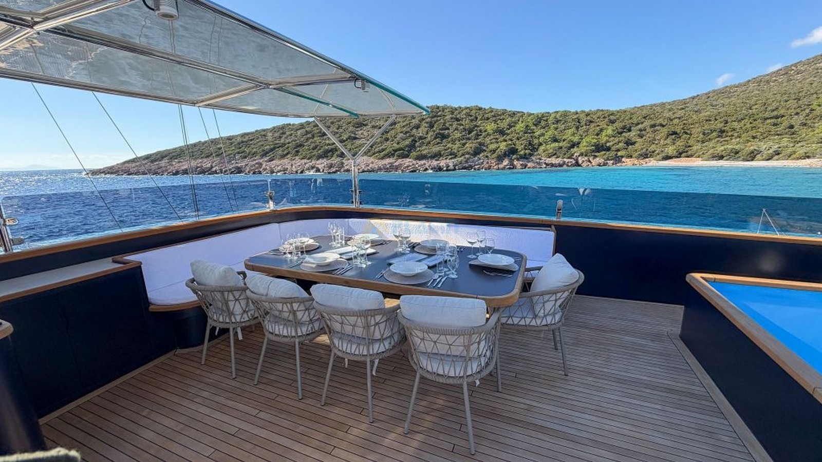 Tüm kabinler üst düzey eğlence sistemi, şarj üniteleri ve yatın lüks tarzını yansıtan dekoratif detaylarla donatılmıştır. Her alan, misafirlere gizlilik, konfor ve zarafeti bir arada sunarak, aileler, çiftler veya küçük gruplar için Türkiye kıyıları ve Yunan Adaları’nda unutulmaz bir ultra lüks mavi tur deneyimi sağlar.