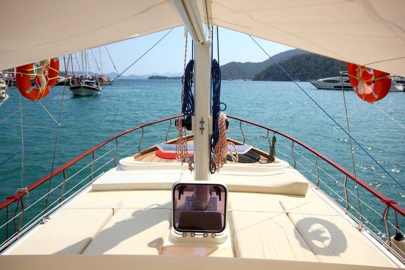 Perfect Life’in güvertesi, gün boyu deniz ve güneşin tadını çıkarabileceğiniz geniş oturma ve güneşlenme alanları ile donatılmıştır. Arka güvertede yemek alanı, önde ise dinlenme ve sohbet köşeleri bulunur. Deniz merdiveni ve güverte duş noktaları ile denize erişim son derece kolaydır. :contentReference[oaicite:5]{index=5}