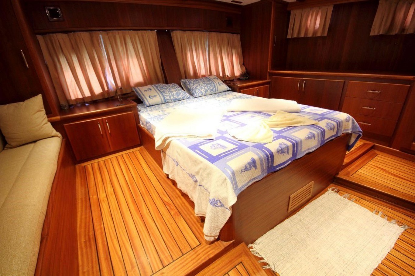 Perfect Life Gulet’in iç mekanı hem konfor hem de mahremiyeti ön planda tutar. Kabinler modern ve rahat döşenmiştir: