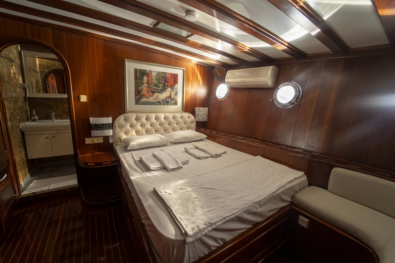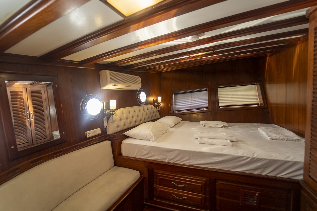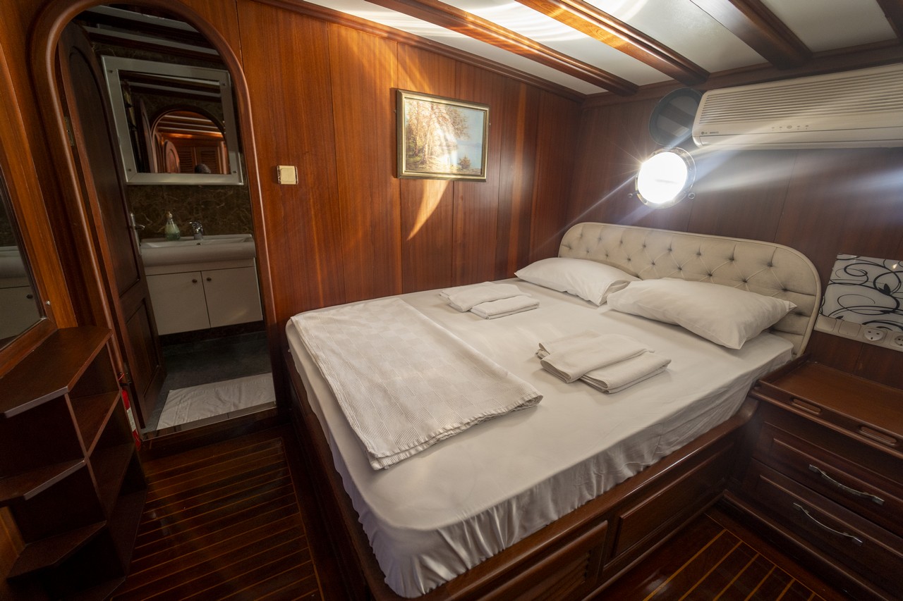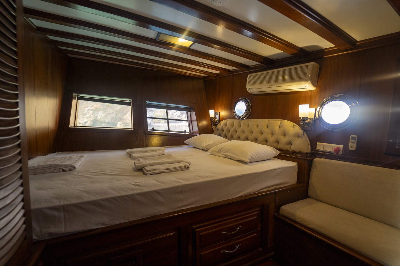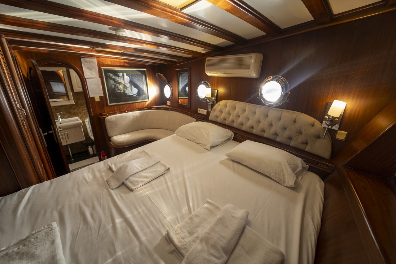 Princess Lila Gulet’deki tüm kabinler, hem gece dinlenmesi hem de gün boyunca konforlu bir yaşam alanı sunacak şekilde tasarlanmıştır. Modern tasarım detayları ve sıcak ahşap dokular, teknede lüks ve rahat bir atmosfer yaratır. Özellikle aileler ve çiftler için ideal olan double kabinler, rahat ve özel bir konaklama deneyimi sağlar. Twin kabinler ise arkadaş grupları veya ayrı yatak tercih eden misafirler için uygundur.