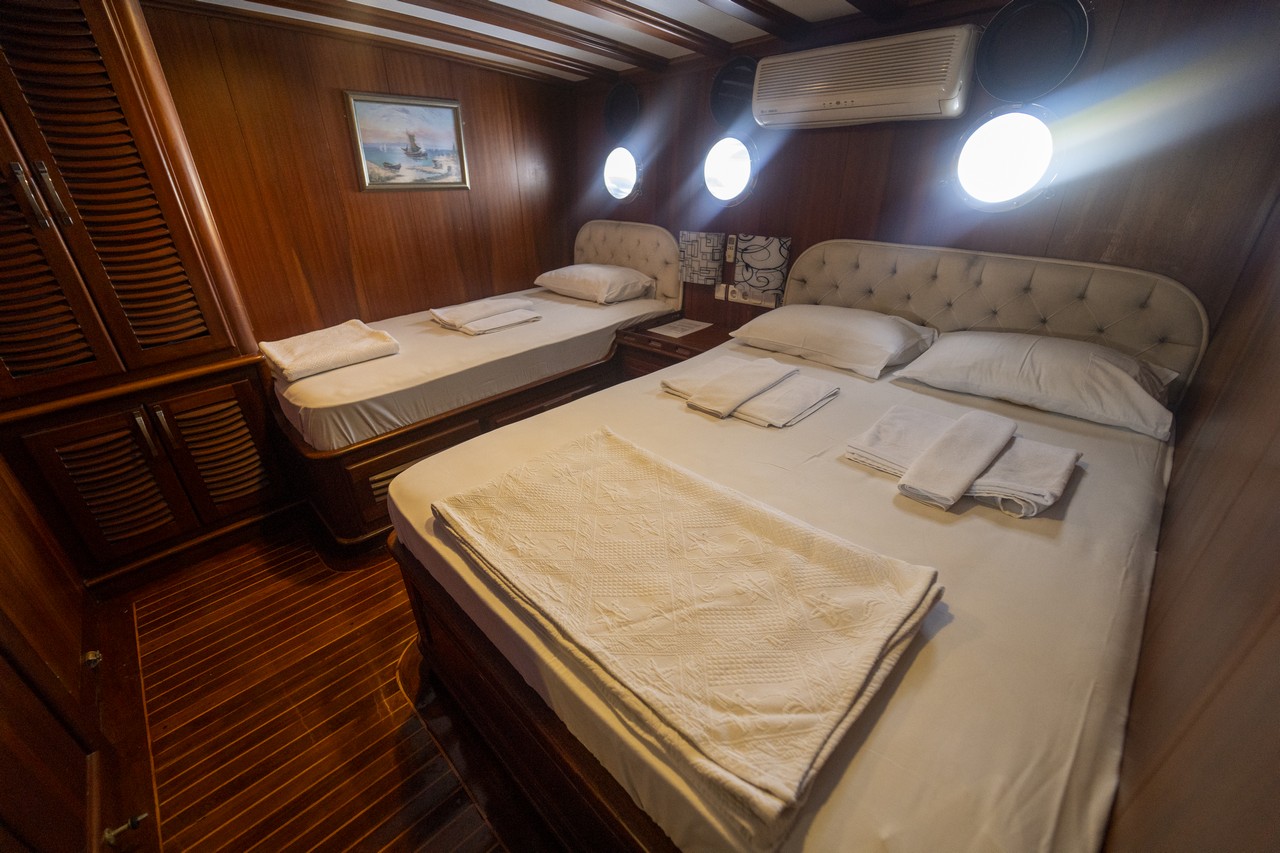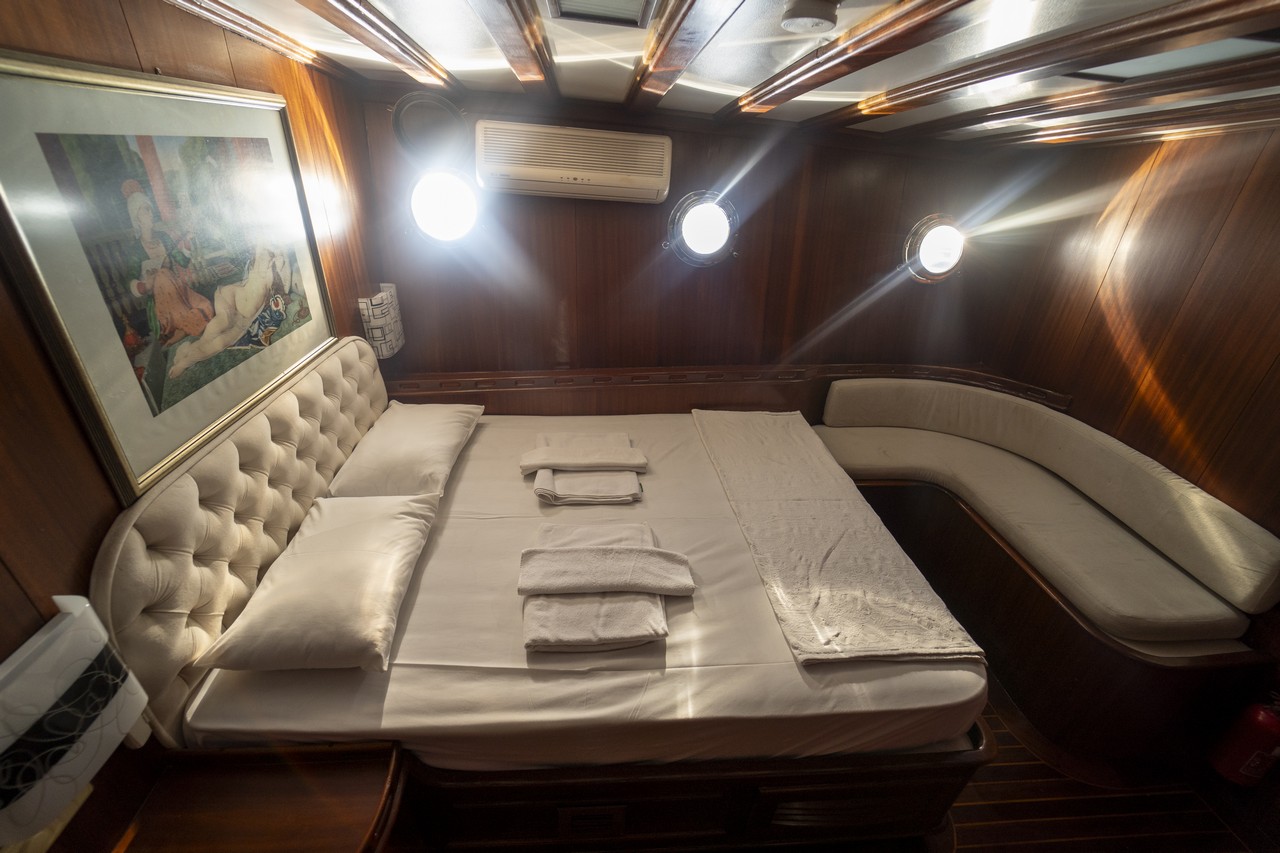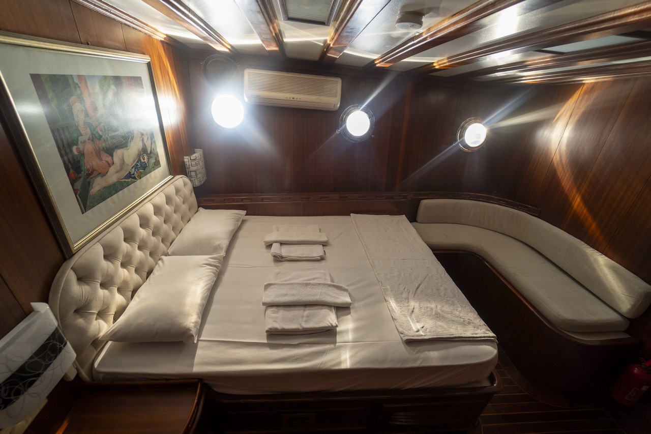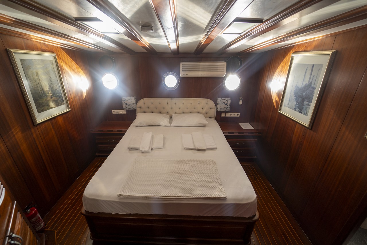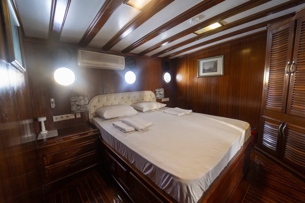 Princess Lila Gulet’deki tüm kabinler, hem gece dinlenmesi hem de gün boyunca konforlu bir yaşam alanı sunacak şekilde tasarlanmıştır. Modern tasarım detayları ve sıcak ahşap dokular, teknede lüks ve rahat bir atmosfer yaratır. Özellikle aileler ve çiftler için ideal olan double kabinler, rahat ve özel bir konaklama deneyimi sağlar. Twin kabinler ise arkadaş grupları veya ayrı yatak tercih eden misafirler için uygundur.